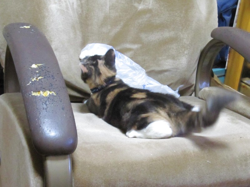 ↑コンビニのレジ袋に飛びついて、大興奮。