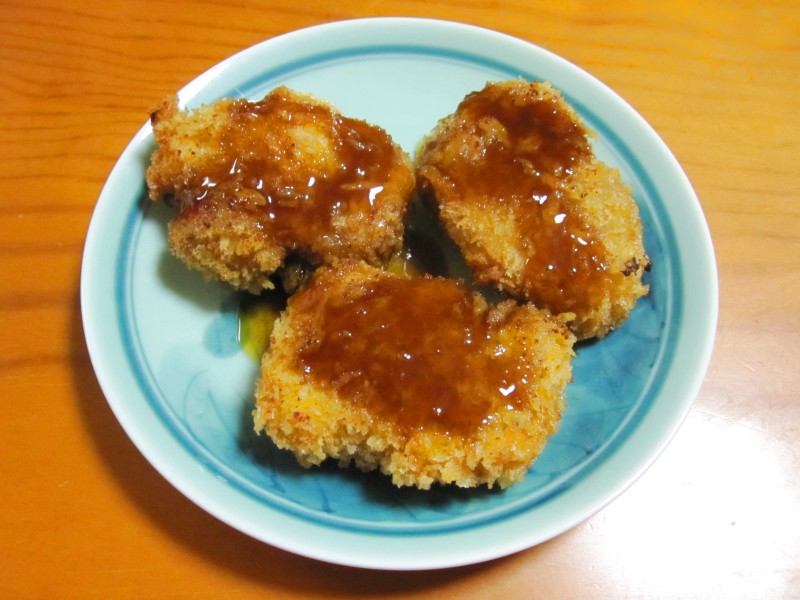 切ったものをもう一度揚げて、ちょっと黒くなっちゃったけど。