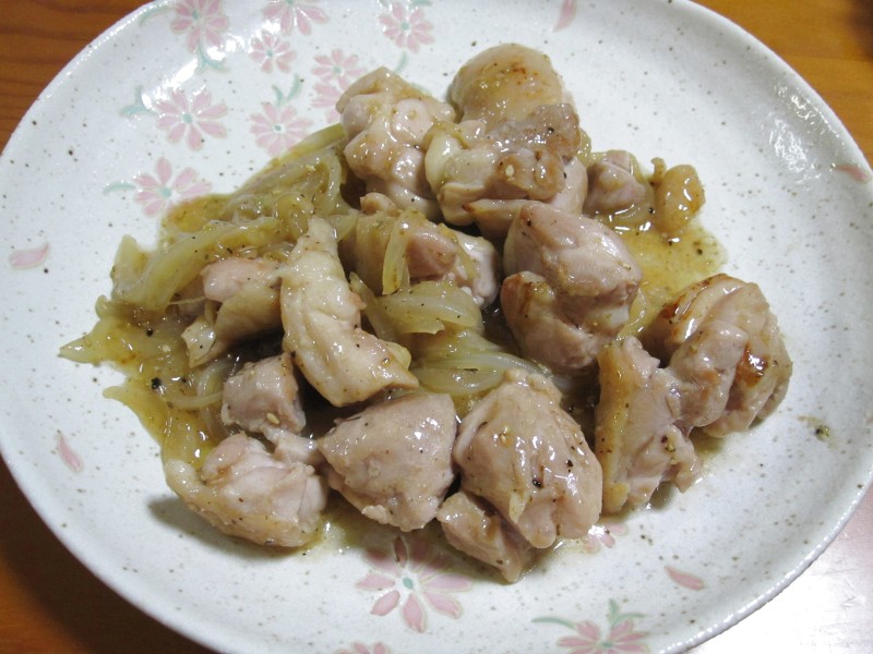 ↑鶏肉と玉ネギの塩ダレ炒め。