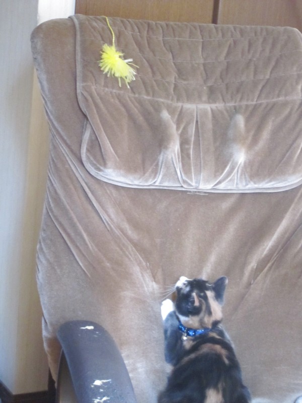 壊れマッサージチェアが、レンたんお気に入りの遊び場所。