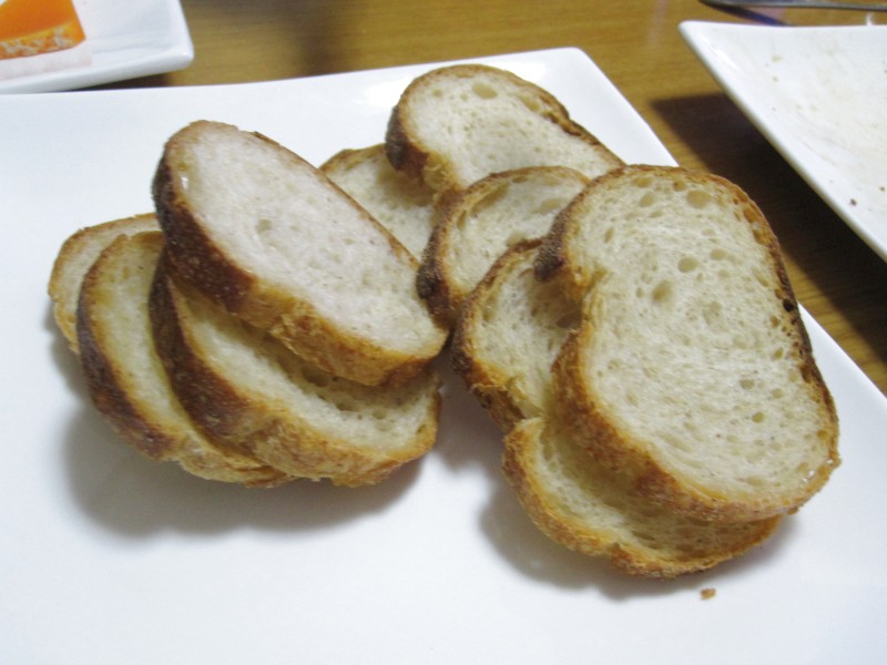 薄く切って、軽くあぶって。チーズをのせて、うまうま。