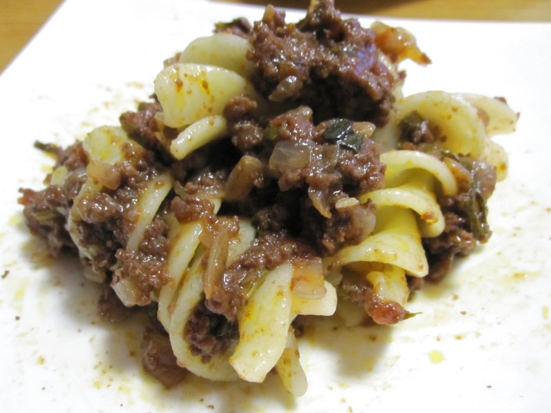 ↑ぐるぐる螺旋にミートソースがからんで、うまうま!