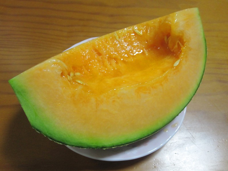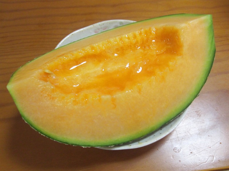 ↑夜のデザートも、メロン。甘うま。しやわせ。