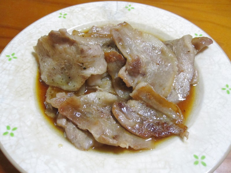 ↑豚肉を焼いたやつ。柚子ポンでさっぱりと。