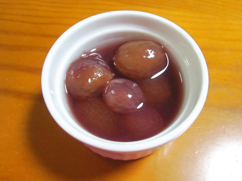 1房収穫して味見してみて、まだ青い粒を甘く煮たんだそうで。