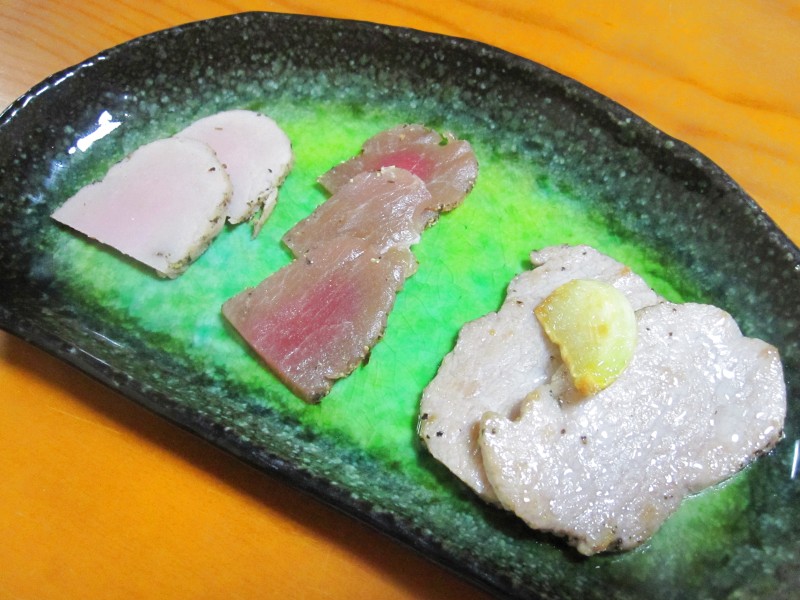 ↑塩豚3種盛り。