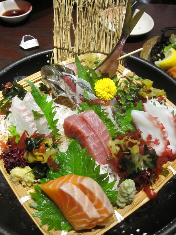 刺身のツマのサラダとアジの骨は、お店からのサービス(だと思う)。