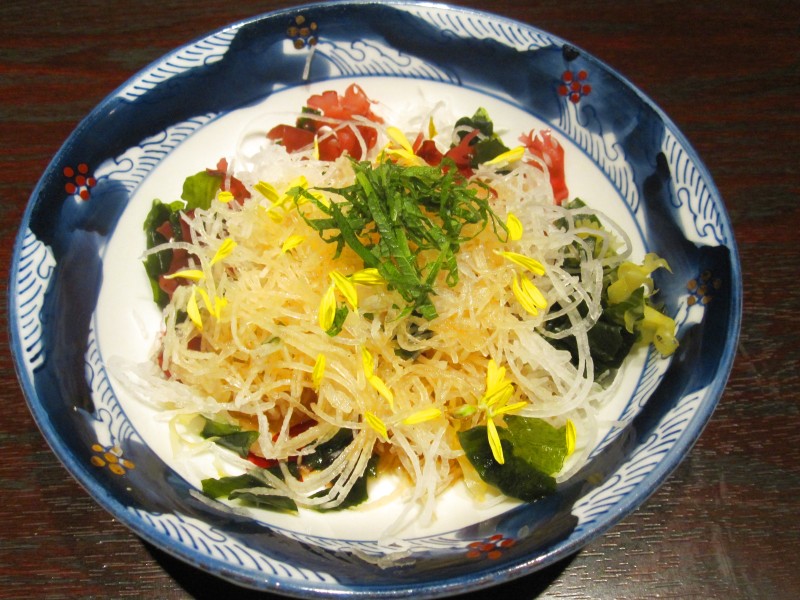 ↑刺身5点盛りに乗っていたツマをサラダにしたもの。