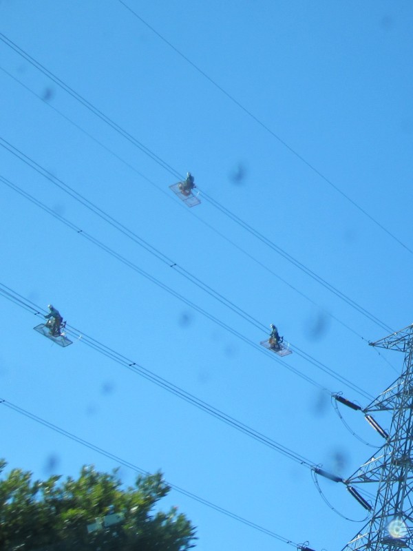 これ、見晴らしの良い場所の、すっごい高い所を通る電線で。
