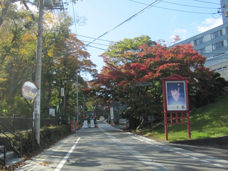 ↑温泉街のあちこちで、ちらほら紅葉が見られた。