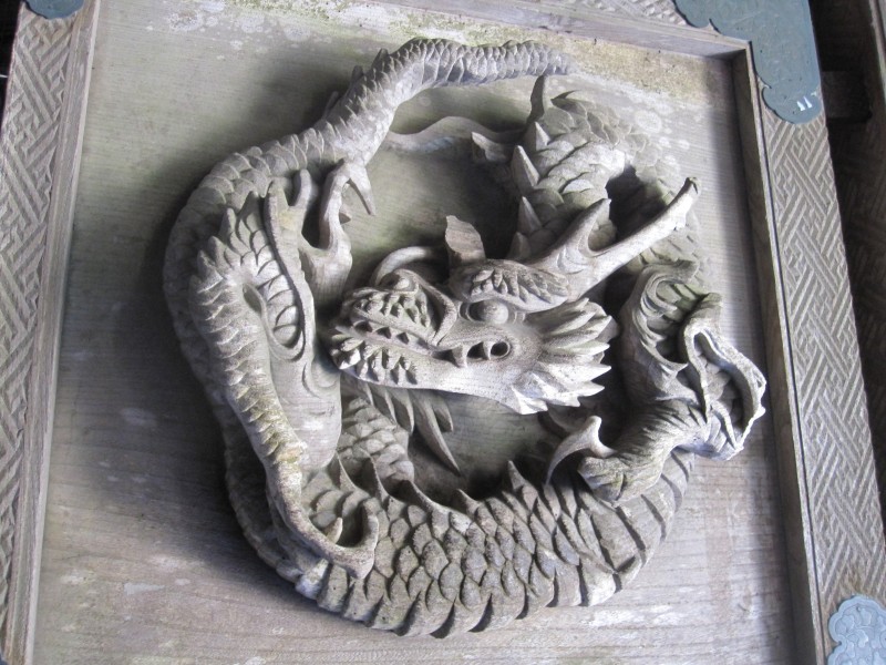 ↑双龍門の扉に彫られた龍の彫刻。かっこかわいい。