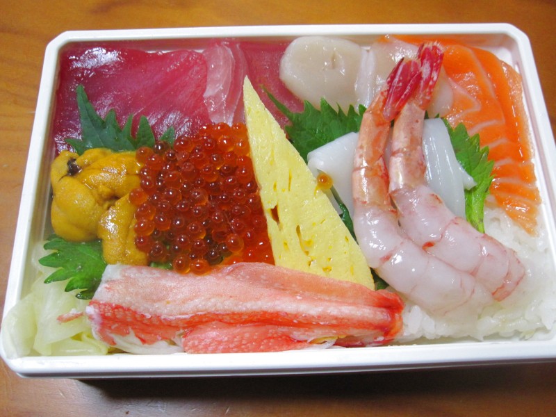 ↑お昼ご飯。海鮮丼っぽいお弁当。