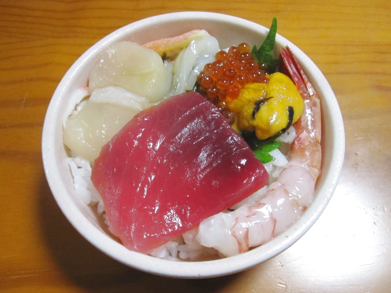 ↑お昼の海鮮丼お弁当の半分。夫の人のために残しておいた。