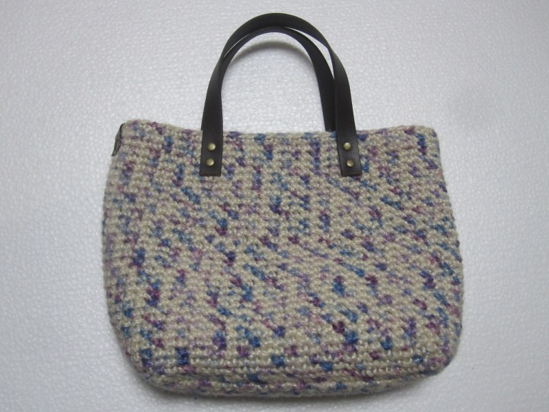 脇に、アクセント兼、編み終わりの段差隠しの皮タブを付けた。