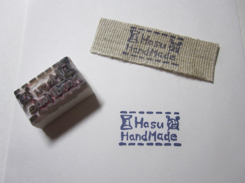 ↑綿麻テープに消しゴムはんこを押して作ったタグ。