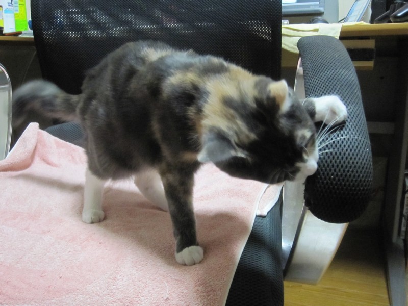 ↑夫の人の椅子の手すりを、ガジガジ・バリバリするのが好き。
