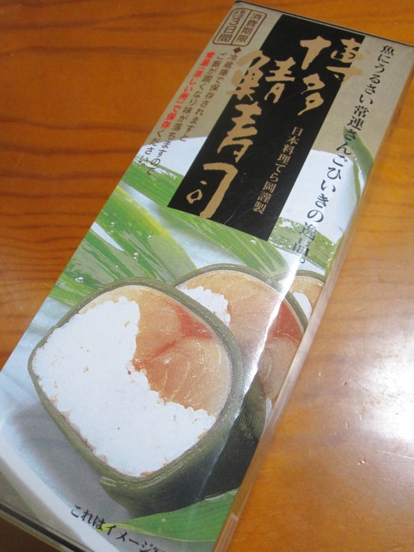 ↑夜ご飯。下からもらった、博多の鯖寿司。
