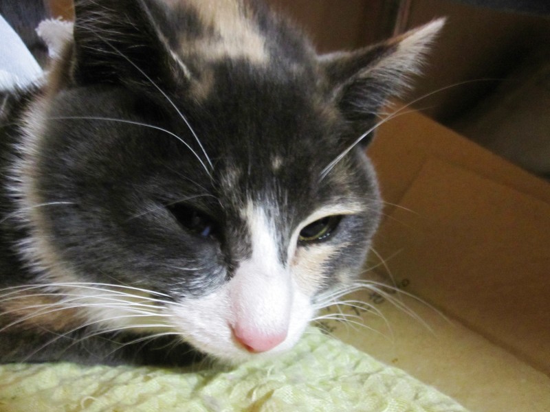 ↑いつもの場所(段ボール箱の上)に落ち着いたレンたん。