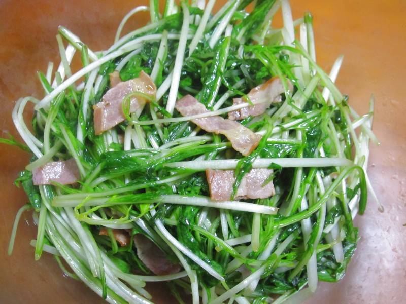 ↑水菜・大葉・ベーコンのサラダ。