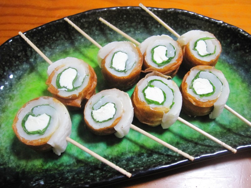 ↑ちくわ・大葉・クリームチーズ巻き。