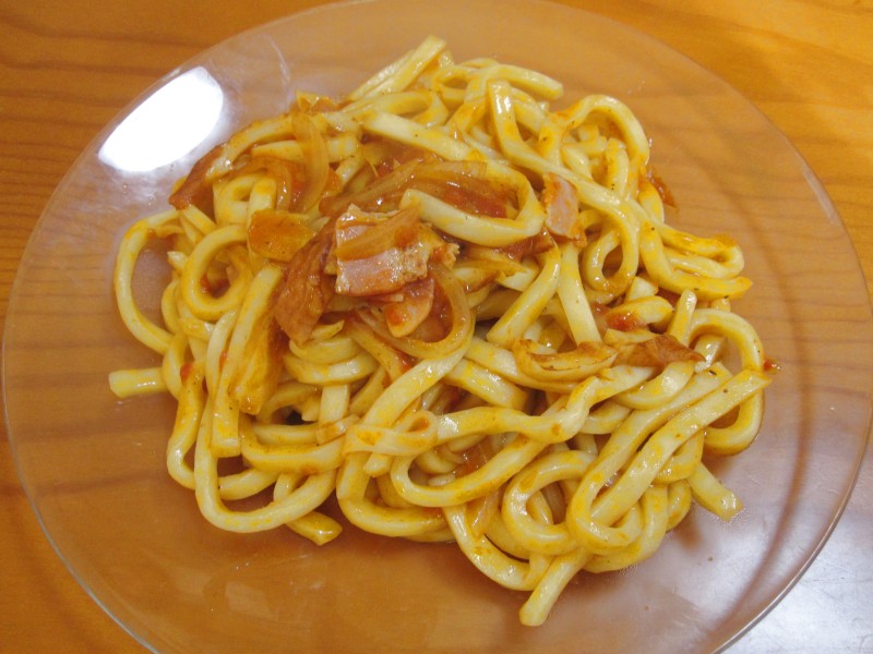焼うどんな感じは無いけど、トマトソース味のもっちり麺うまうま。