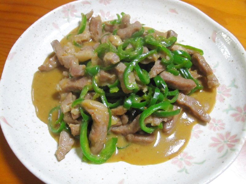 ↑豚肉とピーマンのピリ辛味噌炒め。