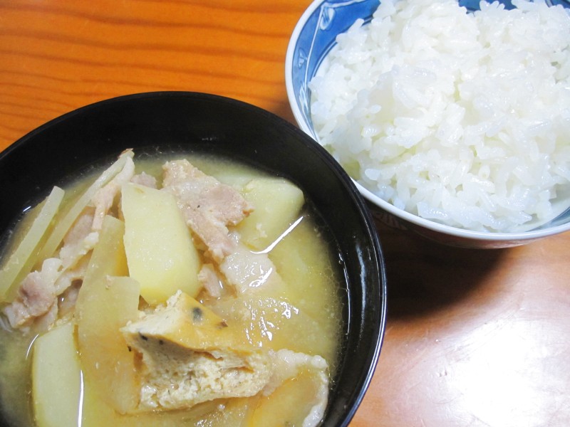 ↑夜ご飯。豚汁・ご飯。