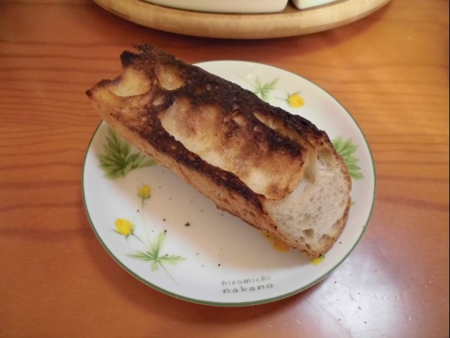 ↑昼ご飯。RINさんにもらったおいしいバゲットをトースト。