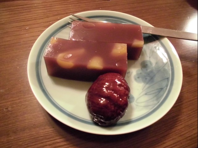 ↑デザート。栗ようかん&渋皮煮。