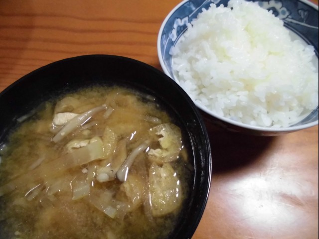 ↑夜ご飯。味噌汁・ご飯。