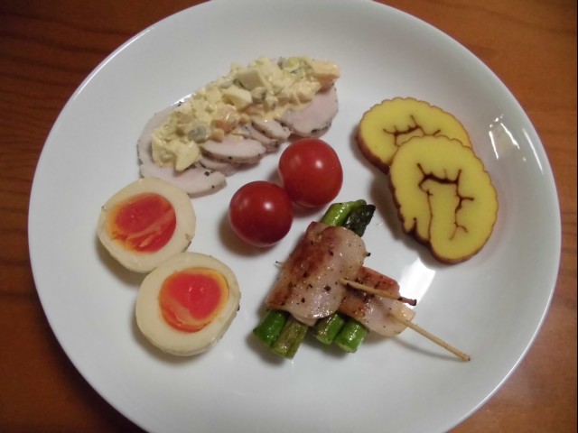 ↑おせちプレート。たまに作るアスパラベーコンが夫の人に好評。