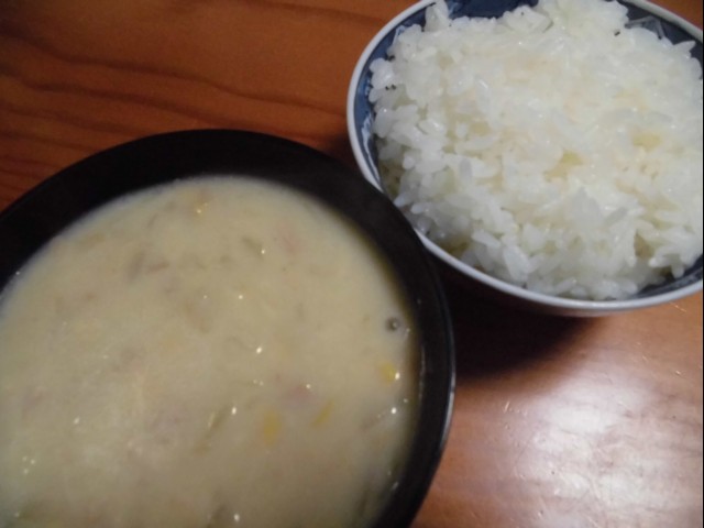 夫の人がシチューを食べるというので、はすがお弁当を食べた。