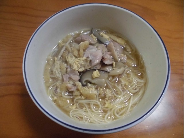 ↑にゅうめん。具は鶏肉・キノコ類・お揚げ。夫の人にとても好評。