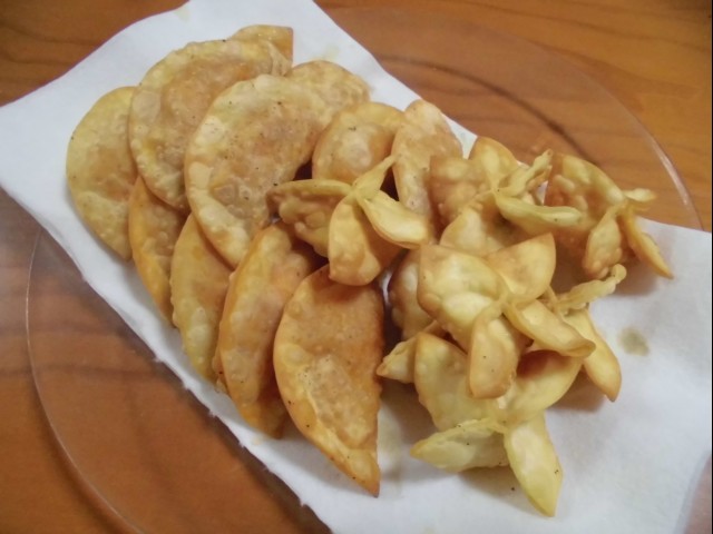 ↑残った餃子の皮で、変わりダネ揚げ餃子2種。