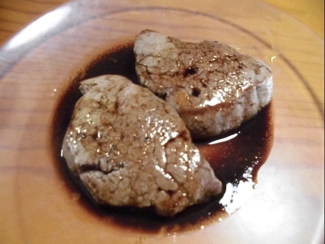 ↑牛ヒレ肉のステーキ。バルサミコ酢のソースで。