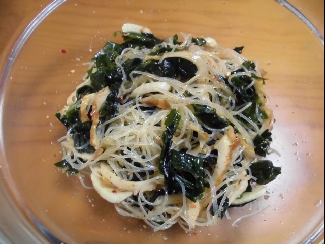 ↑春雨ワカメちくわサラダ。