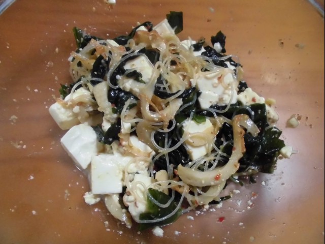 ↑昨日のサラダの残りに、豆腐追加。