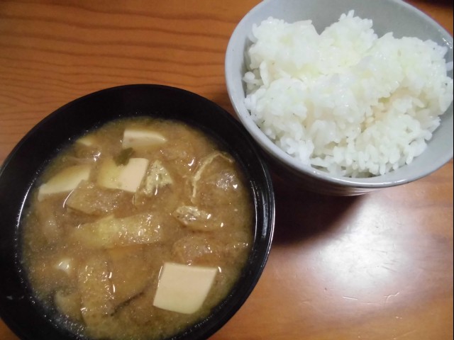 ↑夜ご飯。味噌汁・ご飯。