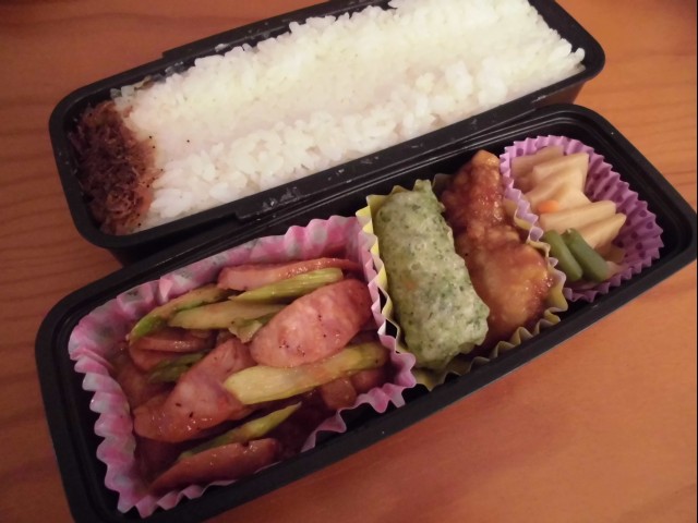 ↑夫の人が休んだ時だけのお楽しみ、はす弁当。はーうまい。