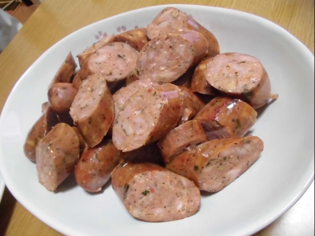 ↑コストコで試食販売していたソーセージ。ピリ辛。
