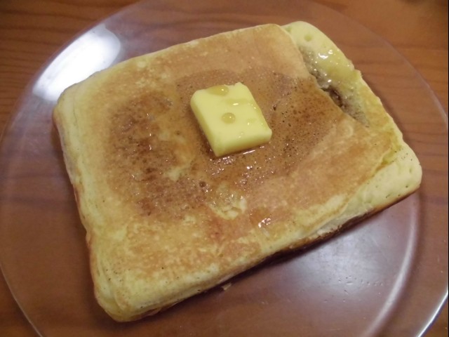 でもふっくら焼けて、バターとメープルシロップかけて、うまうま。