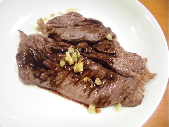 ↑牛肉ステーキ。バルサミコソース、うまうま。