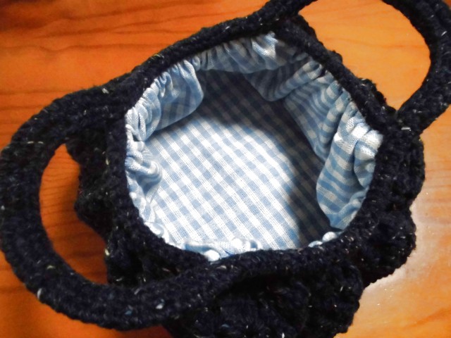 グラニーモチーフは、けっこう穴が大きいので、内布をつけた。