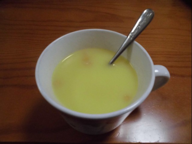 ↑朝ご飯。コーンスープ。