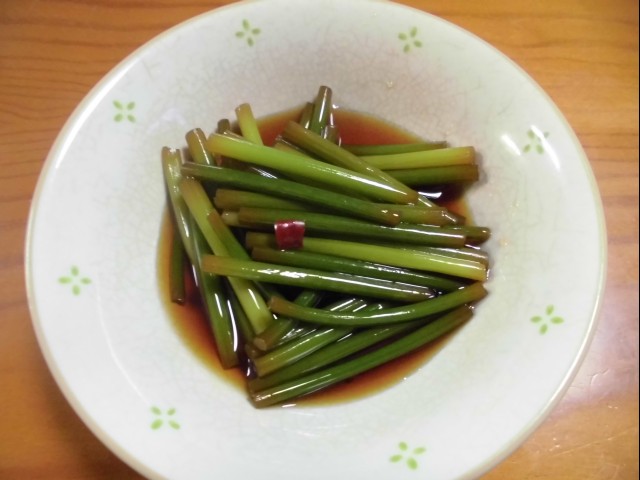 ↑にんにくの芽の浅漬け。