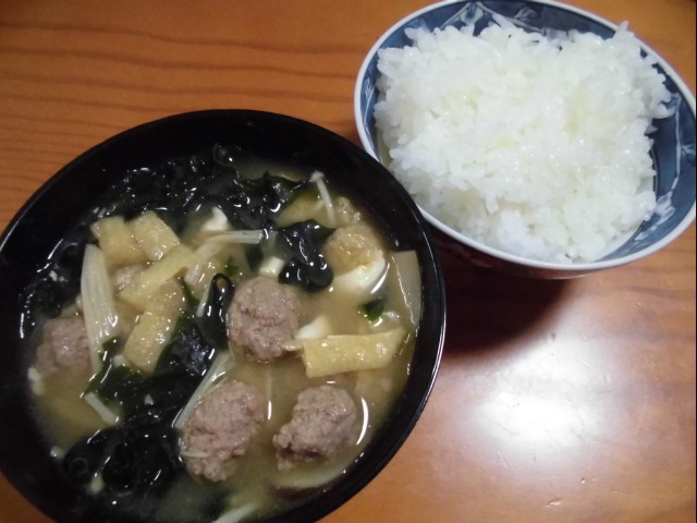 ↑夜ご飯。肉団子味噌汁・ご飯。
