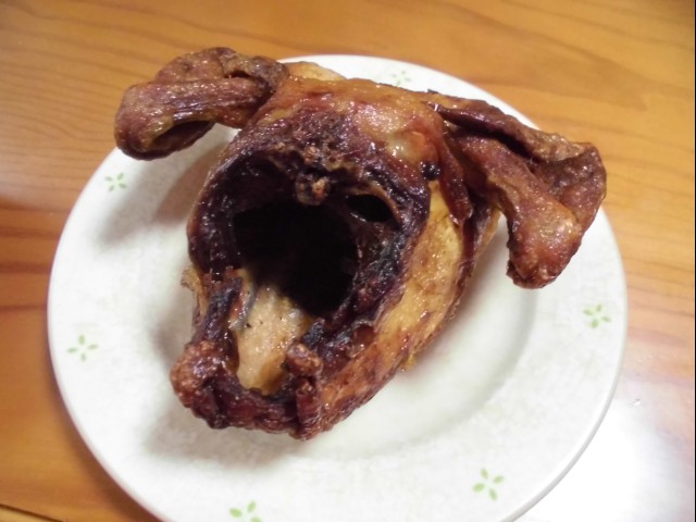 ↑夫の人が帰りに買ってきた、揚げ鶏。