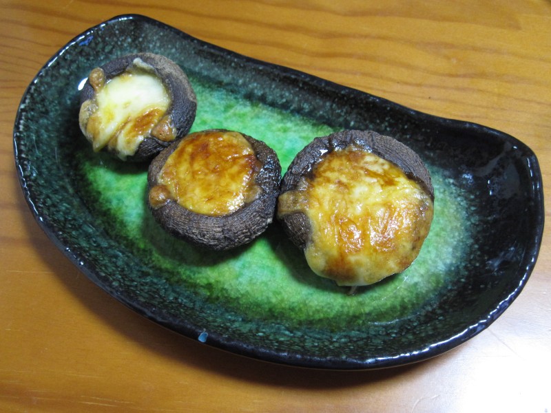 チーズをのせて、醤油をたらして、オーブントースターで焼いた。