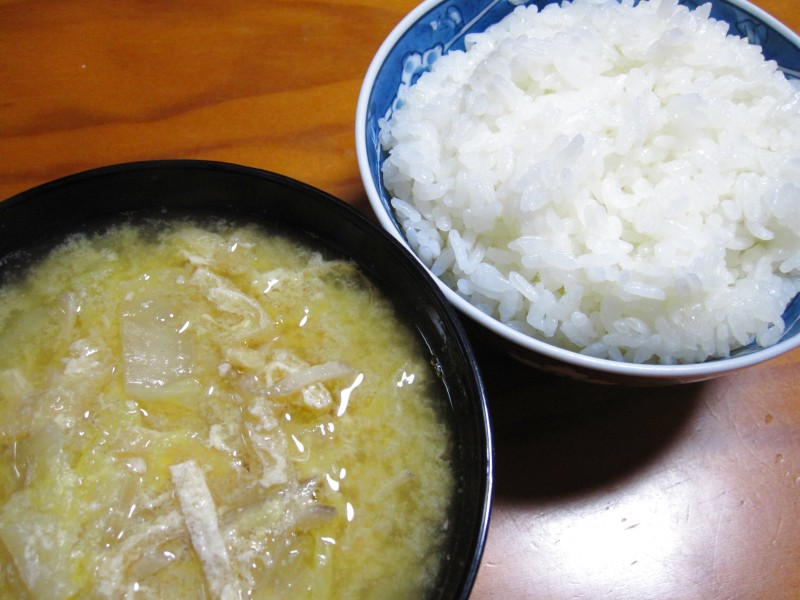 ↑夜ご飯。味噌汁・炊き込みご飯。