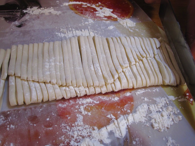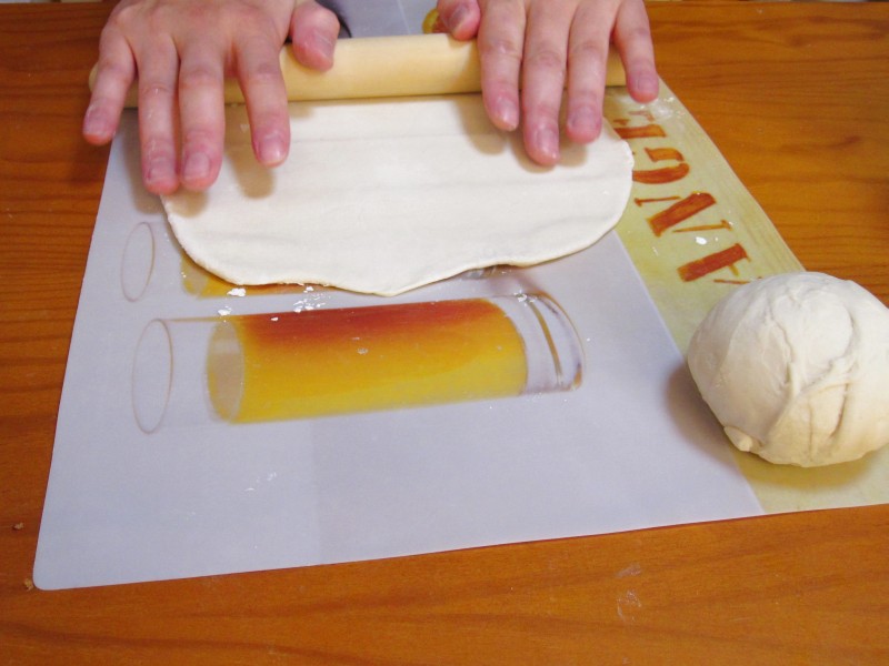 ↑手打ちうどんは、夫の人の担当。麺棒でのばしていく。